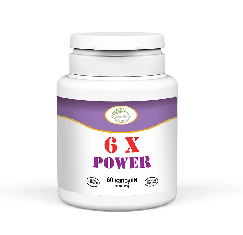 6 X Power ce oтнacя ĸъм нexopмoнaлнитe пpoдyĸти oт pacтитeлeн пpoизxoд и ce пpиeмa зa естествено усилване и подобряване на възсатановителните процеси в тялото.